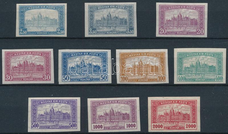 1921/1923 Parlament vágott sor (20.000) / Mi 355-356 + Mi 359 + Mi 361 + Mi 363-368 imperforated set (Image)(Image 1)