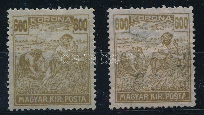 Arató 600K nyomdai hibás bélyeg, melynek következtében a bal oldali értékszám 600 helyett 680. Érdekes, egyedi nyomási eltérés!! / Mi 353 error, 600 on the left side seems to be 680. Interesting and unique printing error!! Certificate: Glatz (Image)(Image 1)