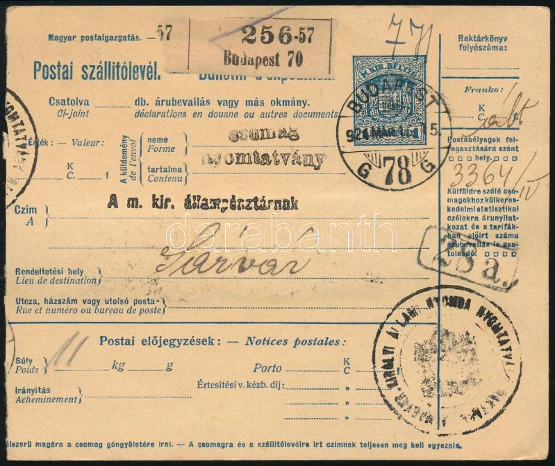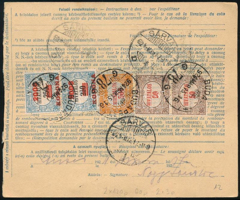 1924 Szállítólevél 5 db Hivatalos bélyeggel / Parcel card with Official stamps (Image)(Image 1)
