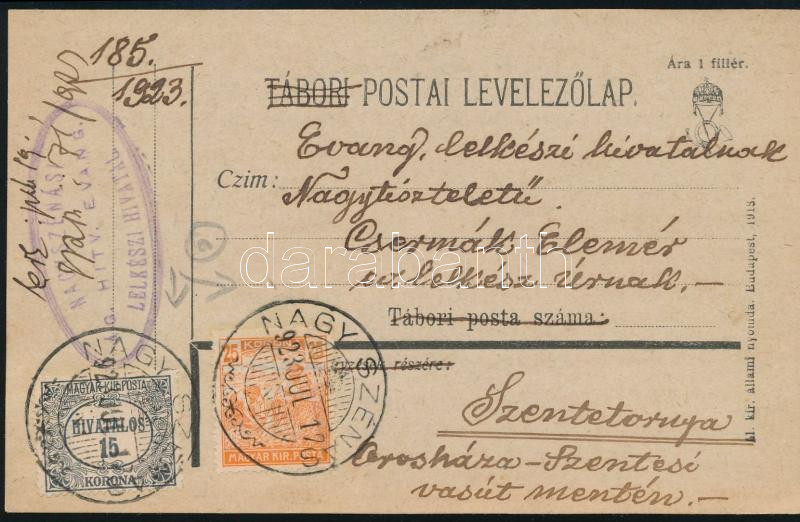 1923 Levelezőlap Arató és Hivatalos vegyes bérmentesítéssel / Postcard with mixed franking (Image)(Image 1)