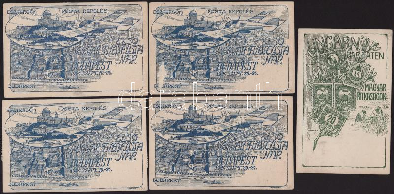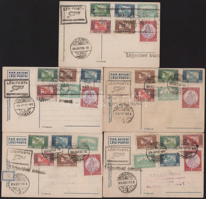 1924 5 db légiposta képeslap "BUDAPEST - ESZTERGOM - BUDAPEST" járattal továbbítva / 5 airmail postcards (Image)(Image 1)