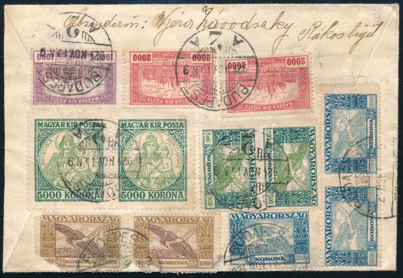 1926 Expressz levél Bécsbe 3 db Koronás Madonnával / Express cover with 18.000K franking to Vienna (Image)(Image 1)