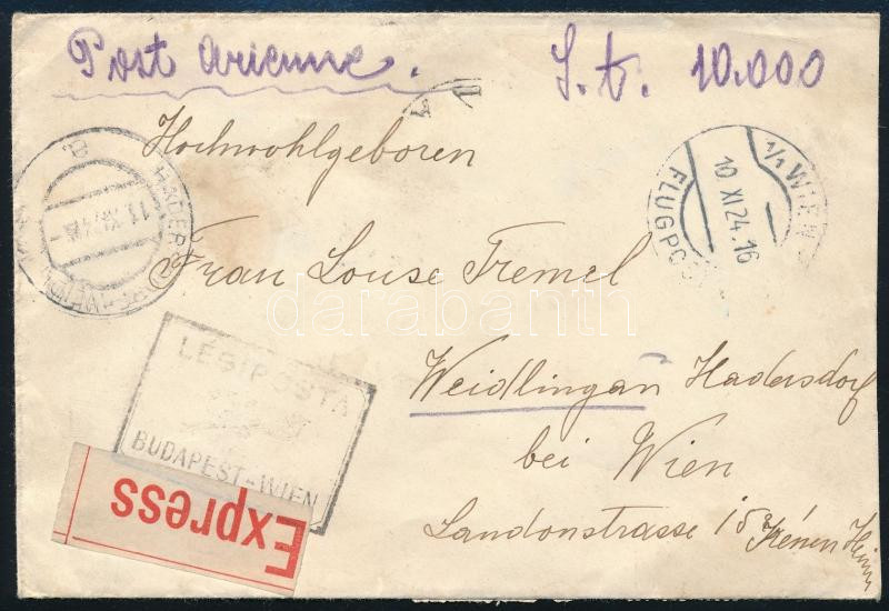1924 Expressz légi levél "BUDAPEST" - "WIEN" / Express airmail cover to Vienna (Image)(Image 1)