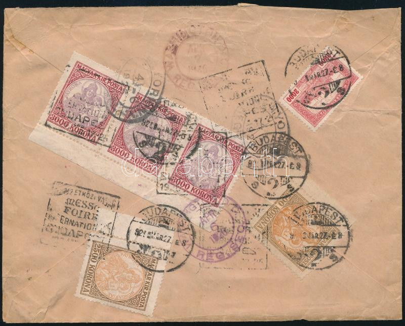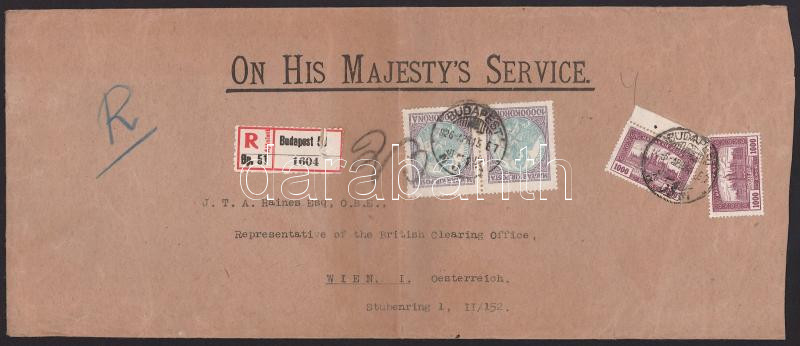 1926 Ajánlott levél Bécsbe 22.000K bérmentesítéssel / Registered cover to Vienna with 22.000K franking (Image)(Image 1)