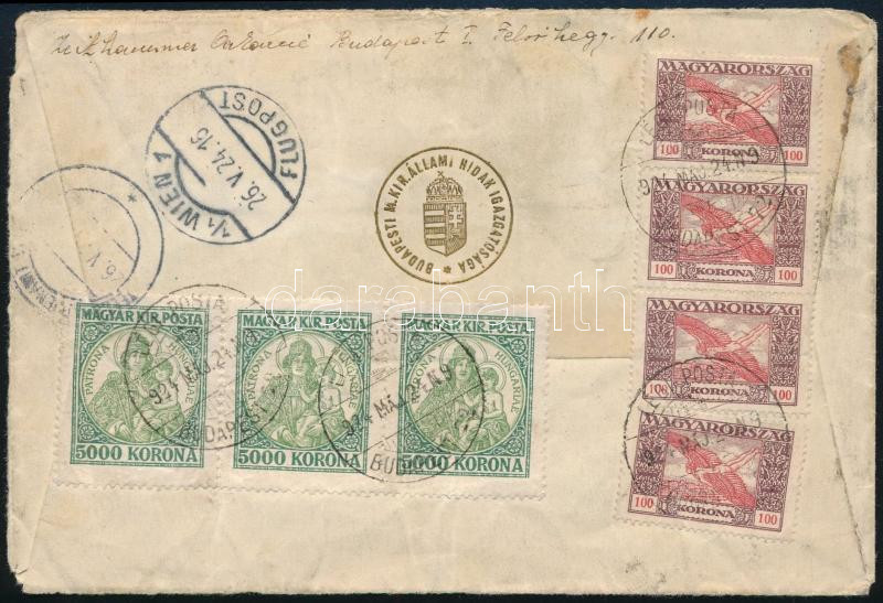 1924. maj. 21 Légi levél Ausztriába Ikarusz és Koronás Madonna bélyegekkel bérmentesítve / Airmail cover to Austria franked with Ikarusz and Madonna stamps