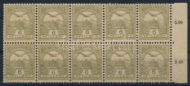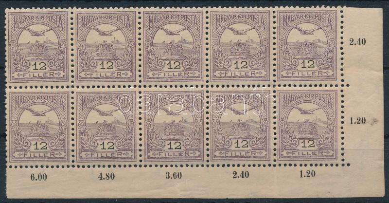 Turul 12f ívsarki tízestömb A2 vízjelállással (kis fogelválás) / Mi 80 corner block of 10 (slightly aparted perf.) (Image)(Image 1)