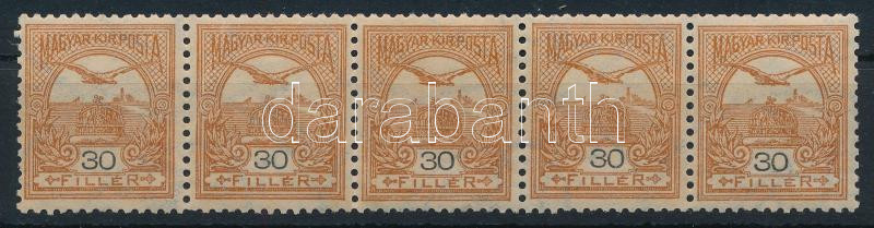 Turul 30f ötöscsík teljes csillagvízjellel / Mi 63 stripe of 5 with a whole star in the watermark (Image)(Image 1)