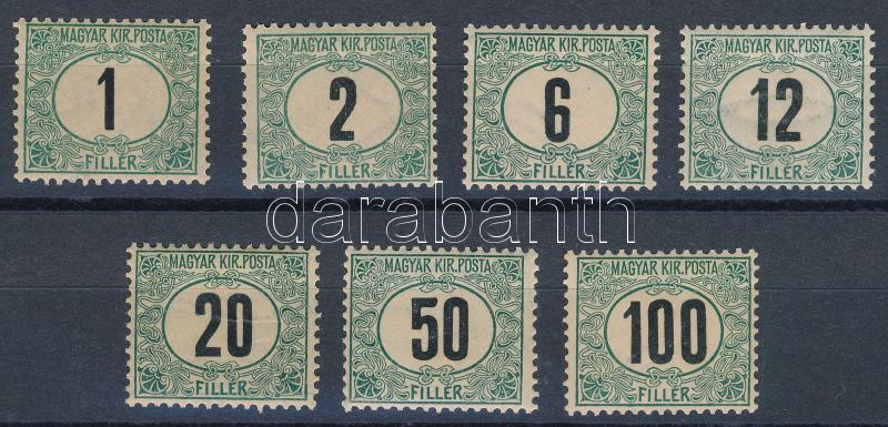 Zöldportó 7 klf bélyeg 11 3/4 : 12 fogazással (20kr falcos, papírránc) / 7 Postage due stamps, perforation 11 3/4 : 12 (20kr hinged, paper crease) (Image)(Image 1)