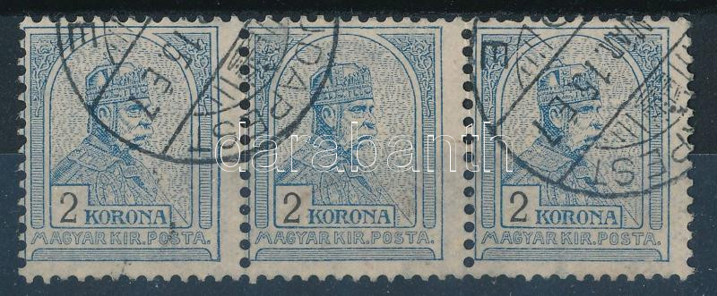 Turul 2K hármascsík 2. vízjelállással, elfogazva / Mi 88 stripe of 3, watermark position 2., shifted perforation (Image)(Image 1)