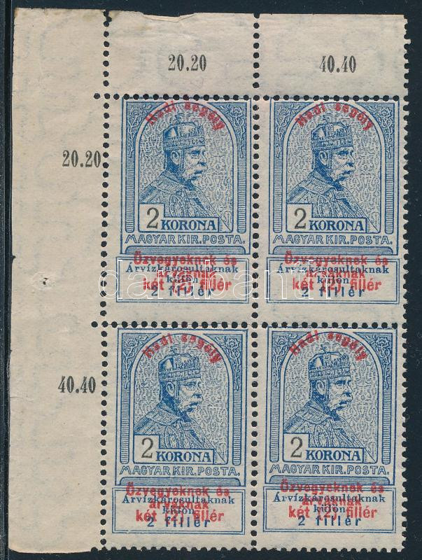 1914 Hadisegély I. 2K ívsarki négyestömb (elvált fogak) (92.000) / Mi 160 block of 4 (aparted perfs) (Image)(Image 1)