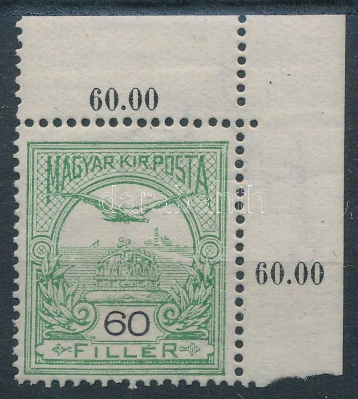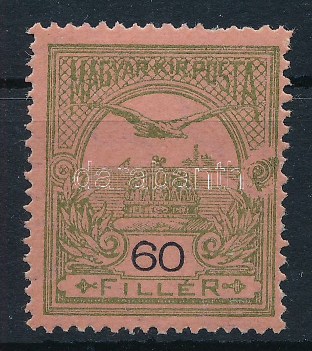 1913 Turul 60f bélyeg a jobboldalon jelentős nyomáshiánnyal / Mi 123 with large printing error (Image)(Image 1)