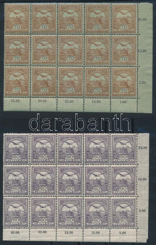 1913 Turul 70f és 80f 15-ös tömbök, I-II. típusok (Image)(Image