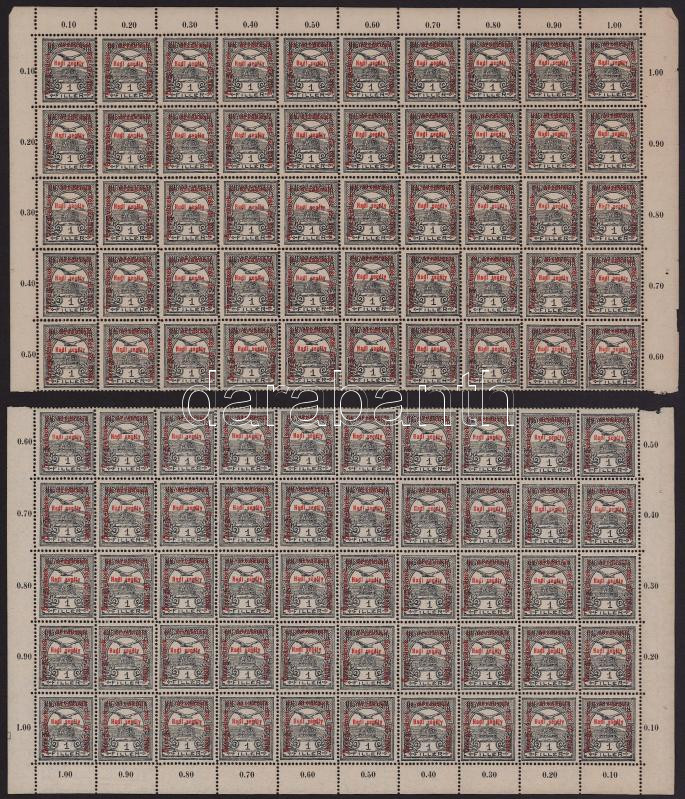 1915 Hadisegély II. 1f 2 db fél ív (valaha 1 volt), I-II típusok / 2 x Mi 162 block of 50 (Image)(Image 1)