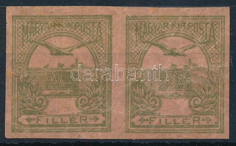 1913 Turul 60f fogazatlan pár fekvő vízjellel, értékszám nélkül, gumi nélküli papíron, (vízszintes hajtásnyom, ráncok) / Mi 123Y imperforate pair, value omitted, without gum (horizontal fold, creases) (Image)(Image 1)