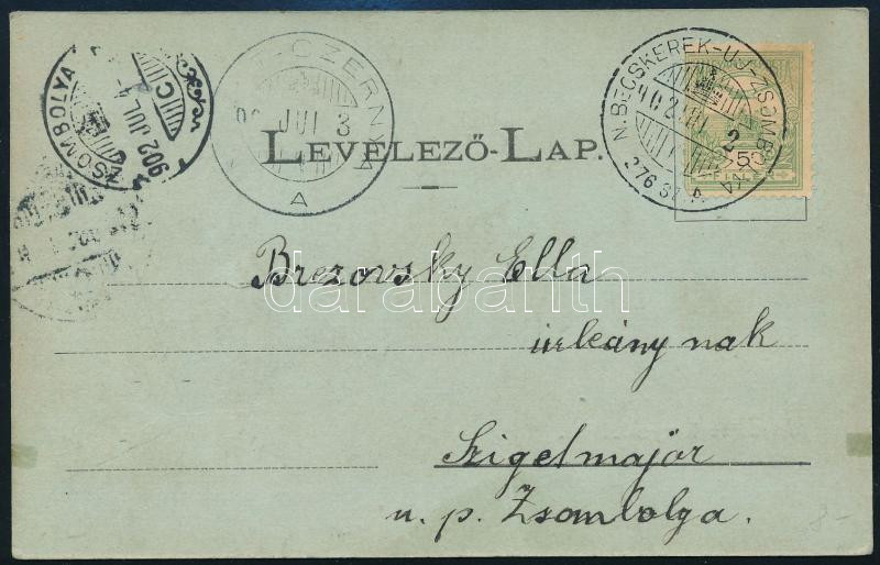 1902 Képeslap mozgóposta bélyegzéssel / Postcard "N.BECSKEREK-UJ-ZSOMBOLYA" (Image)(Image 1)
