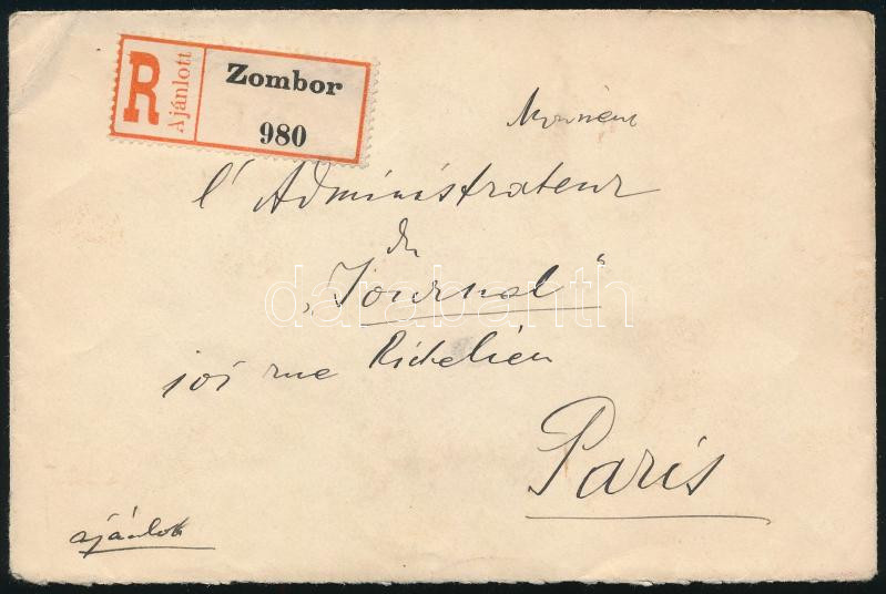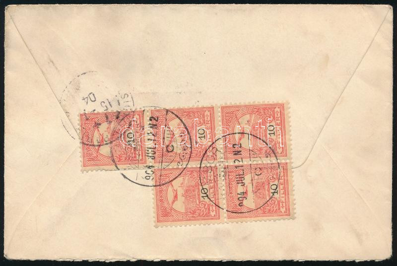 1904 Ajánlott levél Párizsba 5 x Turul 10f bérmentesítéssel / Registered cover to Paris (Image)(Image 1)