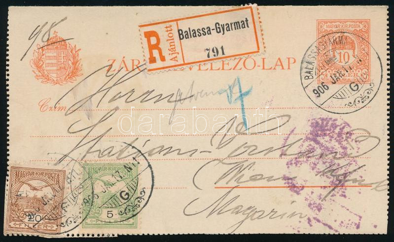 1906 Ajánlott díjjegyes zárt levelezőlap 25f díjkiegészítéssel Bécsbe / Registered PS-cover card with additional franking to Vienna (Image)(Image 1)