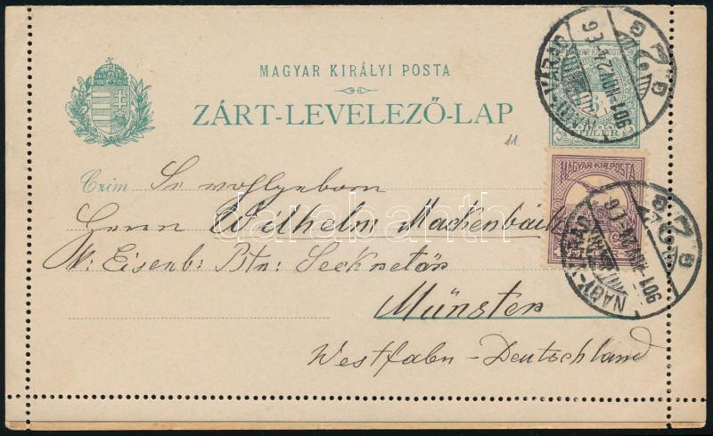 1901 Díjkiegészített díjjegyes zárt levelezőlap Németországba "NAGY-VÁRAD" / PS-card with additional franking to Germany (Image)(Image 1)