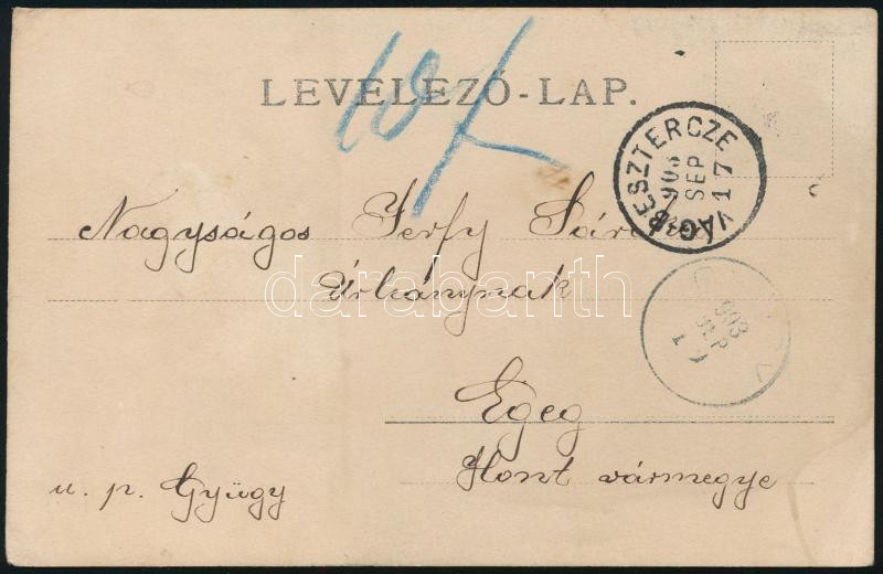 1903 Képeslap kézi portózással / Postcard with handwritten postage due fee "VÁG-BESZTERCZE" (Image)(Image 1)