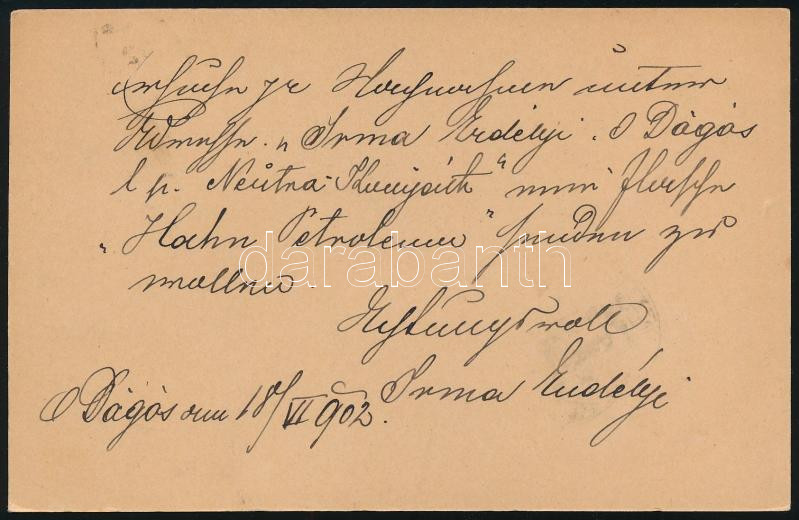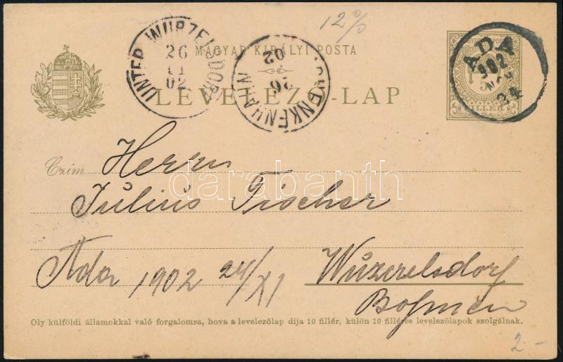 1902 5f díjjegyes levelezőlap / PS-card "ADA" - "UNTER WURZELSDORF" (Image)(Image 1)