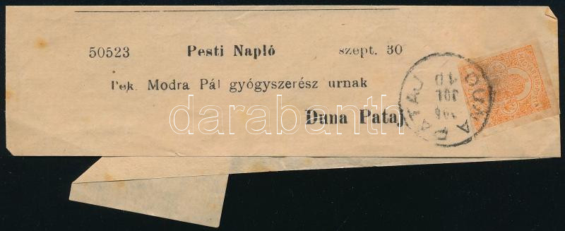 1906 Hírlapbélyeg teljes címszalagon / Newspaper stamp on complete wrapper "DUNA PATAJ" (Image)(Image 1)