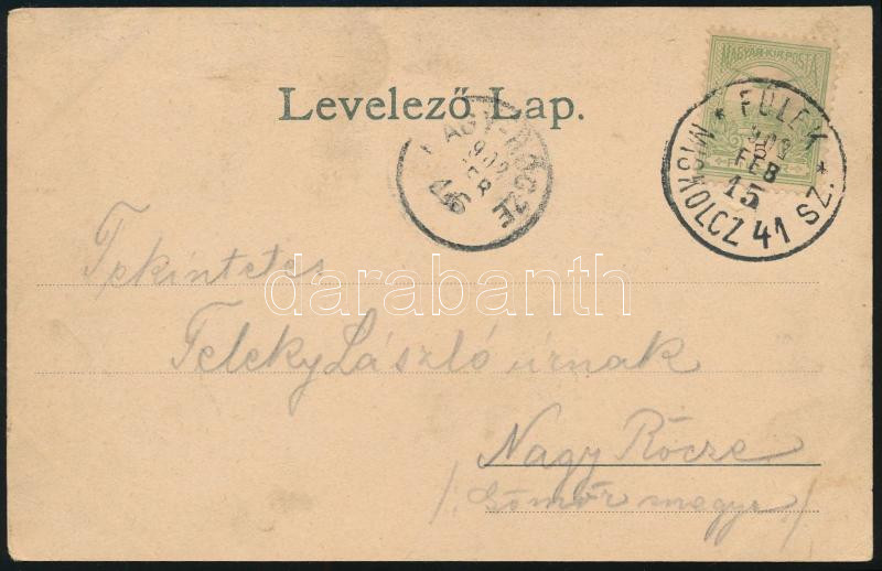 1902 Képeslap "FÜLEK / MISKOLCZ" vasúti mozgóposta bélyegzéssel / Postcard with railway postmark (Image)(Image 1)