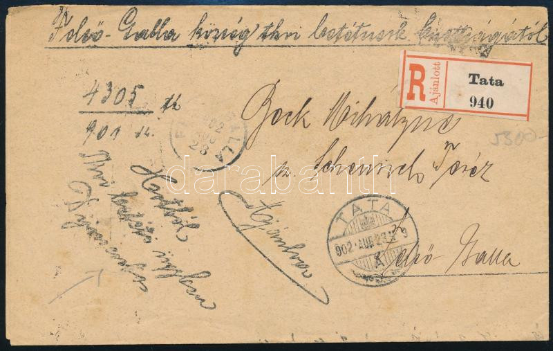 1902 Ajánlott levél / Registered cover "TATA" (Image)(Image