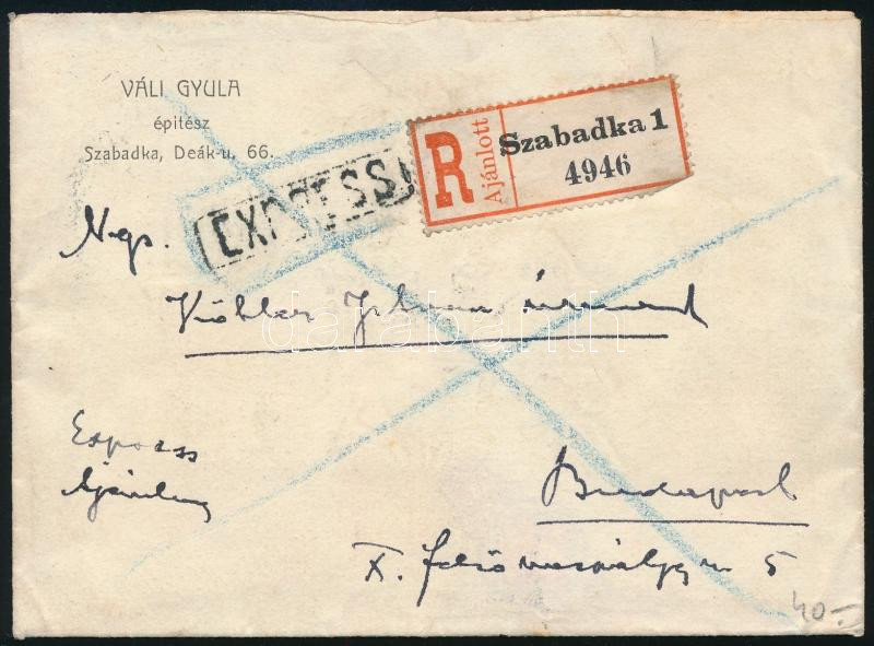 1904 Expressz ajánlott levél Turul 30f + 35f bélyeggel "SZABADKA" / Express registered cover (Image)(Image 1)