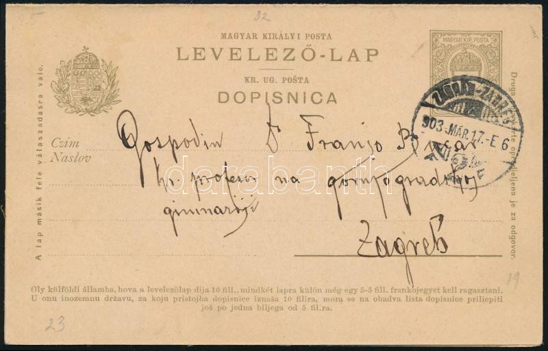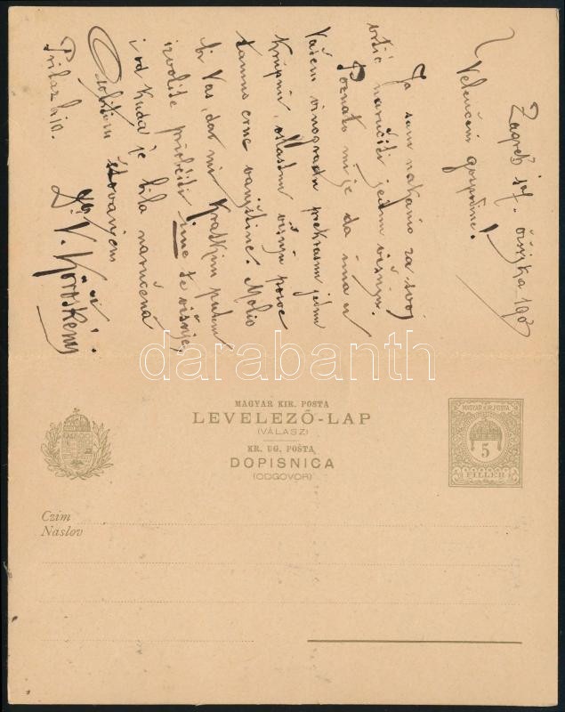 1903 Zágráb helyi válaszos levelezőlap használatlan válaszrésszel / Local PS-reply card, reply part unused (Image)(Image 1)