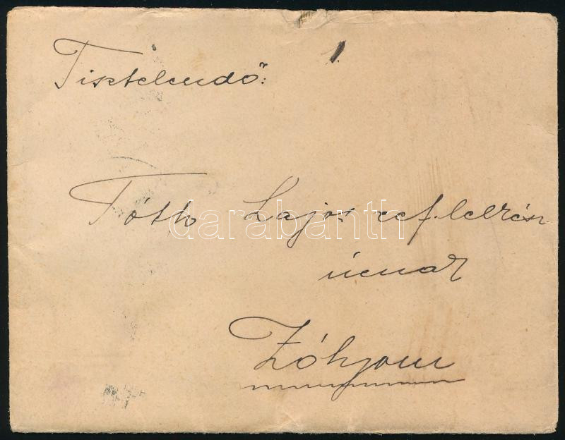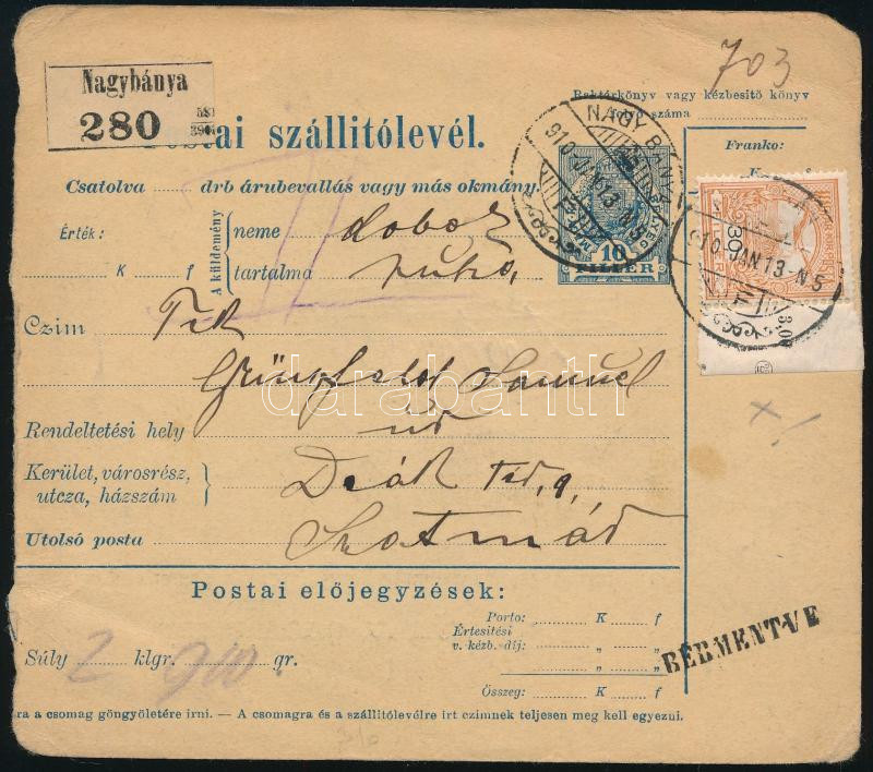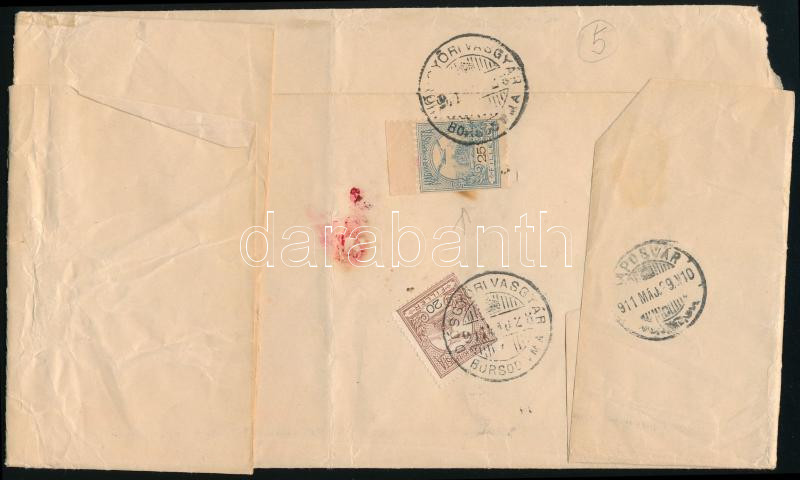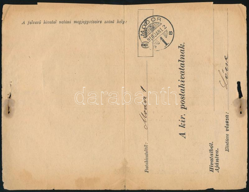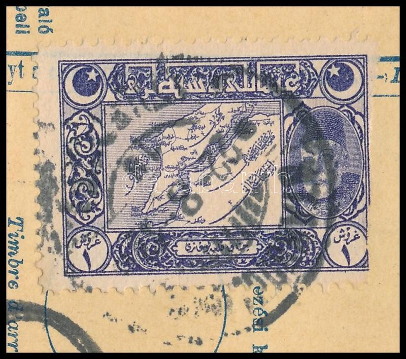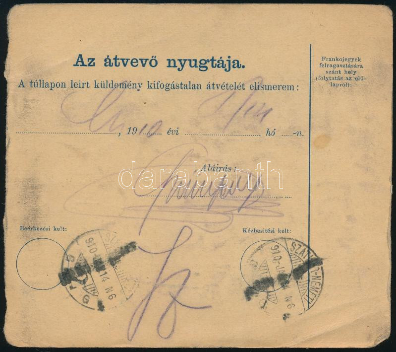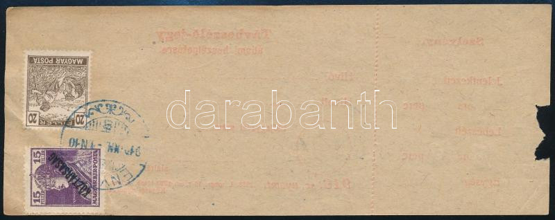 1910 Turul 30f ívszéli bélyeg ívszéli jelzéssel szállítólevélen / 30f margin stamp, sign on the margin, on parcel card (Image)(Image 1)