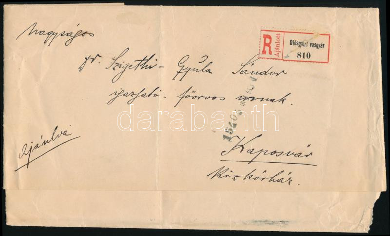 1911 Ajánlott levélen Turul 25f füzetbélyeg + 20f / Registered cover with 25f from stamp booklet + 20f "DIÓSGYŐRI VASGYÁR / BORSOD VM." (Image)(Image 1)