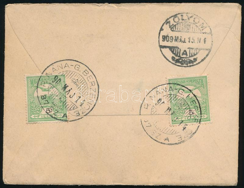 1909 Levél "P.NÁNA-G.BERZENCZE" vasúti mozgóposta bélyegzéssel / Cover with railway postmark (Image)(Image 1)