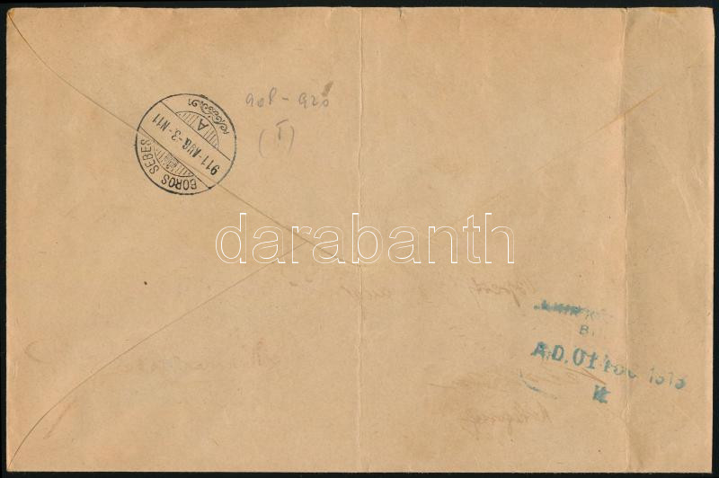 1911 Ajánlott expressz levél 75f bérmentesítéssel "BUDAPEST" - Borossebes / Registered express cover (Image)(Image 1)