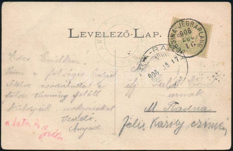 1906 Képeslap GURAHONCZ-ARAD 20.SZ. vasúti + BOROSSEBES pályaudvari bélyegzéssel / Postcard with railway and postal agency postmarks (Image)(Image 1)