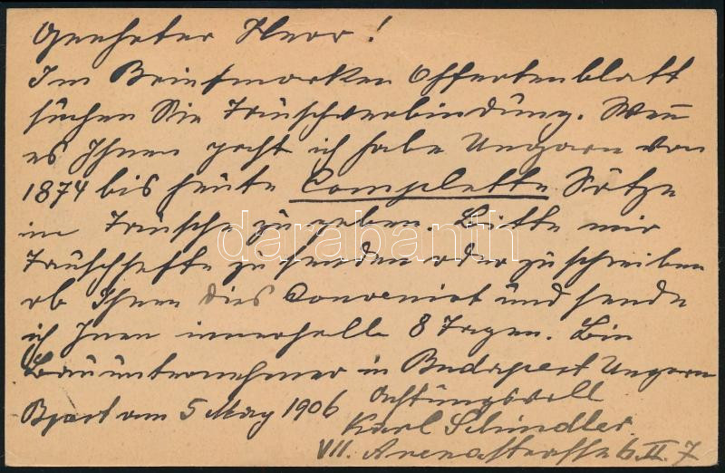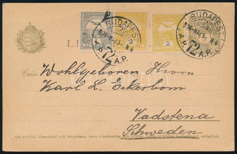 1906 Díjjegyes levelezőlap 3 bélyeges kiegészítéssel Svédországba / PS-card with additional franking to Sweden (Image)(Image 1)