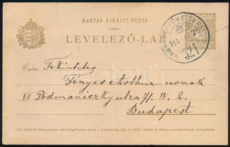 1911 5f díjjegyes levelezőlap "VARANNÓ-TŐKETEREBES" vasúti mozgóposta bélyegzéssel / 5f PS-card with railway postmark (Image)(Image 1)