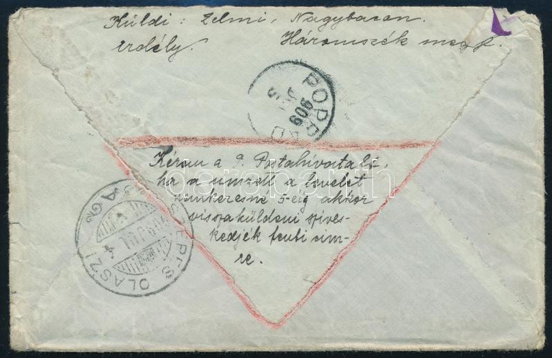 1909 Levél érdekes hátoldali szöveggel, visszaküldve / Returned cover, "NAGYBACZON" + "SZEPES OLASZI" - "POPRÁD" (Image)(Image 1)