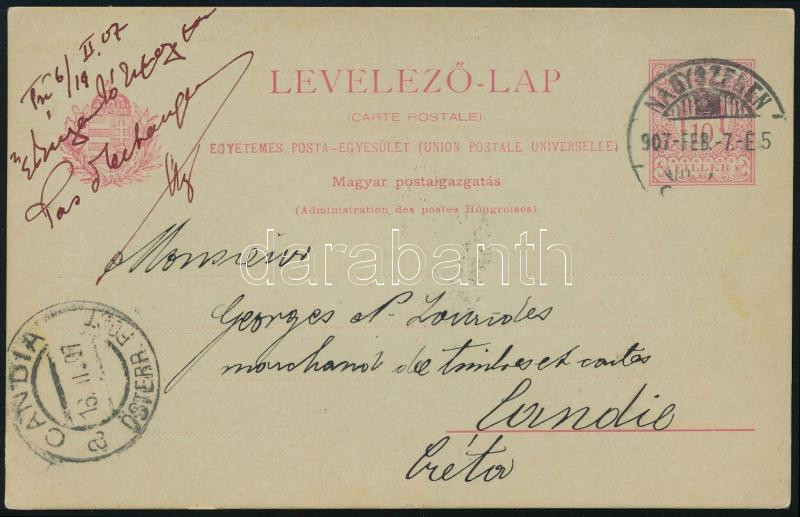 1907 10f díjjegyes levelezőlap Krétára / PS-card to Crete (Image)(Image 1)