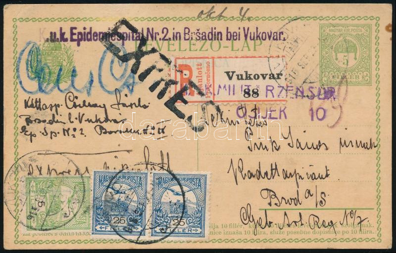 1915 Ajánlott expressz díjjegyes levelezőlap 55f díjkiegészítéssel / Registered express PS-card with additional franking, "VUKOVÁR" - Brod (Image)(Image 1)