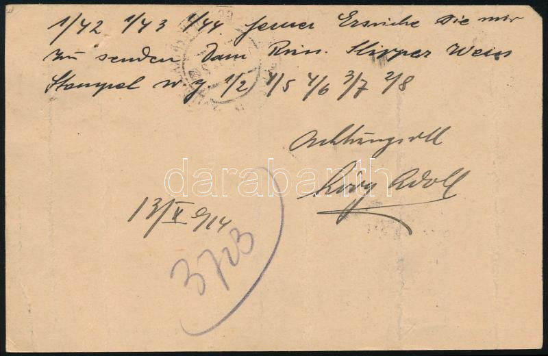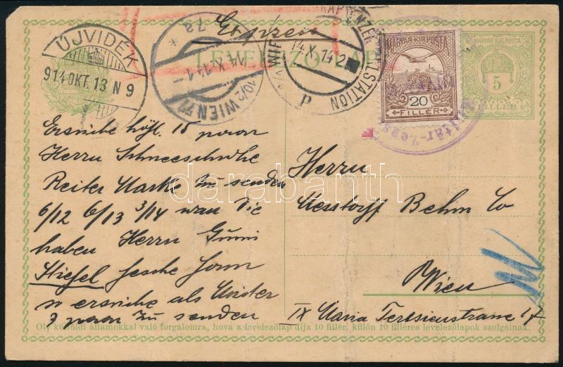 1914 Díjkiegészített díjjegyes levelezőlap cenzúrázva Bécsbe / Censored PS-card with additional franking to Vienna (Image)(Image 1)