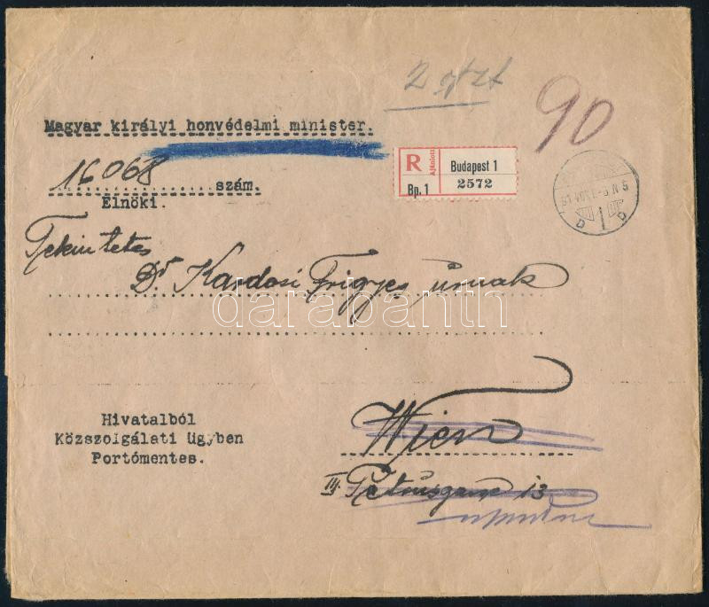 1914 Ajánlott küldemény Bécsbe, visszaküldve / Registered cover to Vienna, returned (Image)(Image 1)