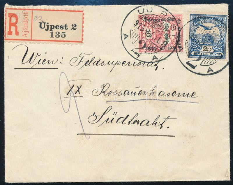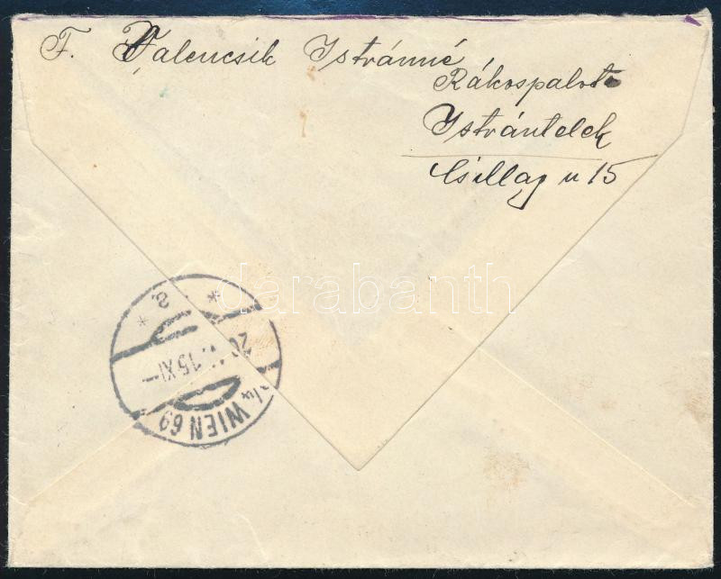 1915 Ajánlott levél Bécsbe / Registered cover to Vienna "UJ PEST" (Image)(Image 1)