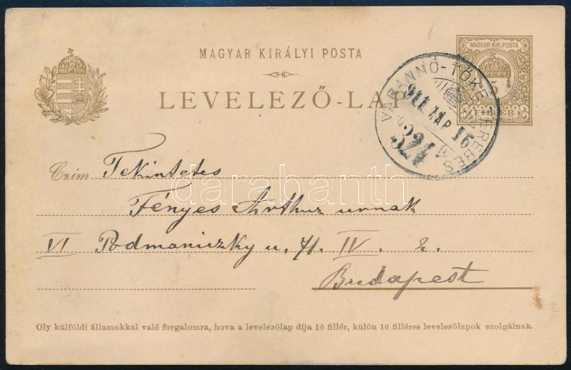 1911 Levelezőlap "VARANNÓ - TŐKE TEREBES" vasúti mozgóposta bélyegzéssel / Postcard with railway postmark (Image)(Image 1)