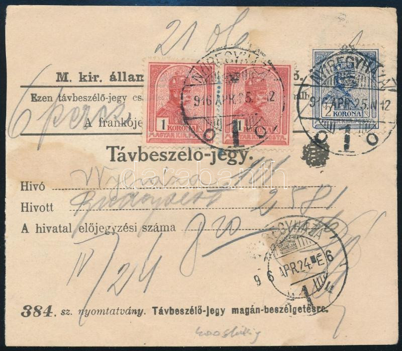 1916 Távbeszélőjegy 2 x 1K + 2K bérmentesítéssel / Telephone ticket "NYÍREGYHÁZA" (Image)(Image 1)