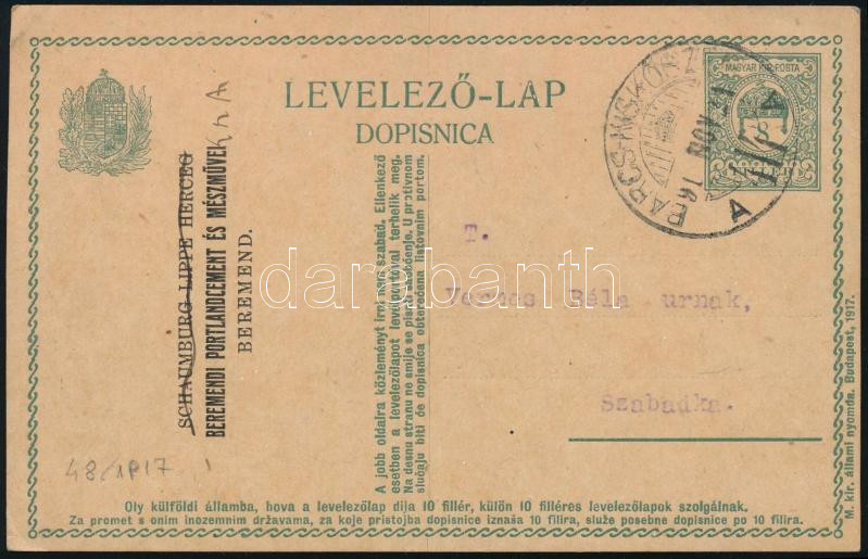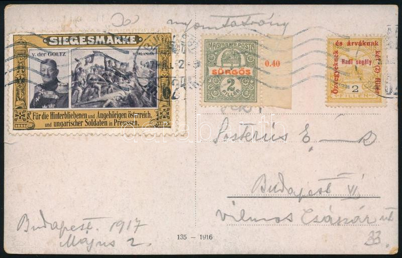 1917 Budapest helyi képeslap levélzáróval / Local postcard with label (Image)(Image 1)