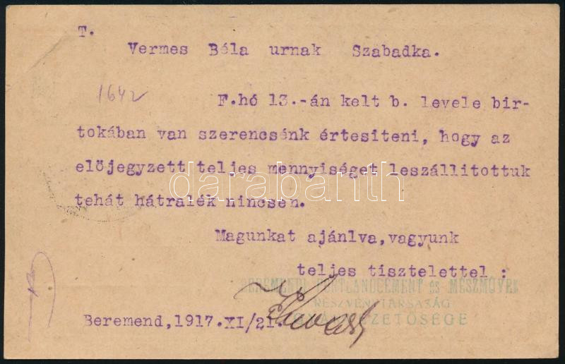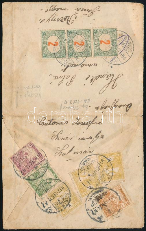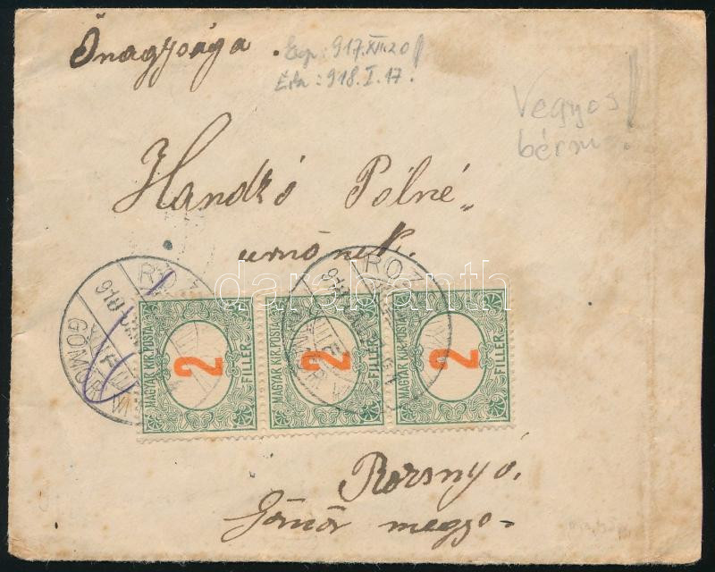 1917 Levél 16f bérmentesítéssel Rozsnyóra, ott 6f értékben portózva / Cover with 16f franking + 6f postage due (Image)(Image 1)