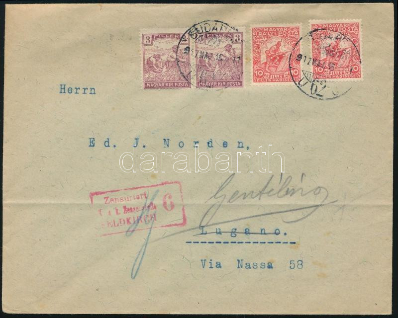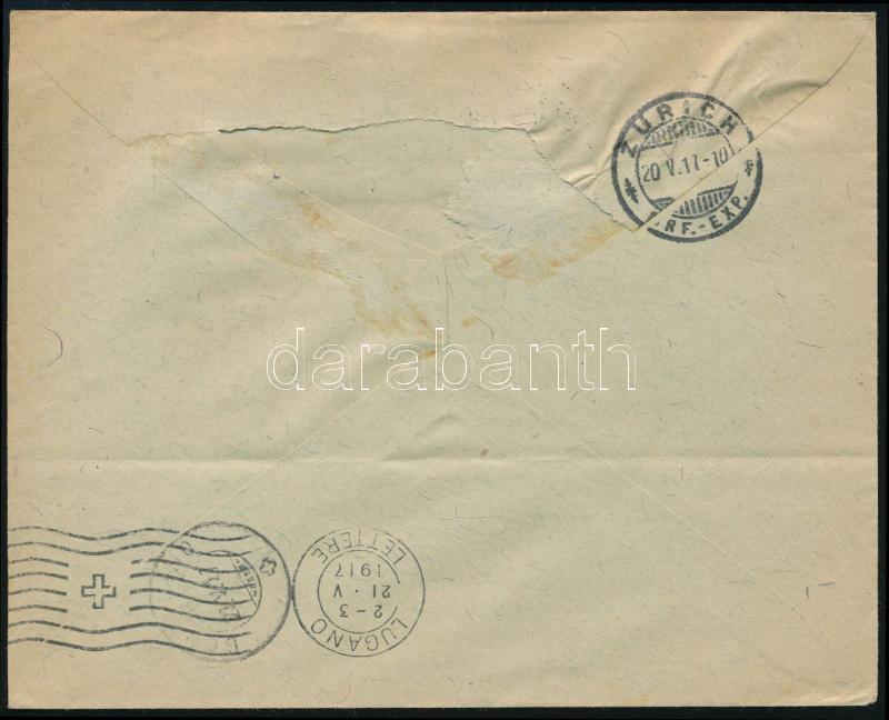 1917 Cenzúrázott levél Luganoba, majd továbbküldve / Censored cover "BUDAPEST" - Lugano, redirected (Image)(Image 1)