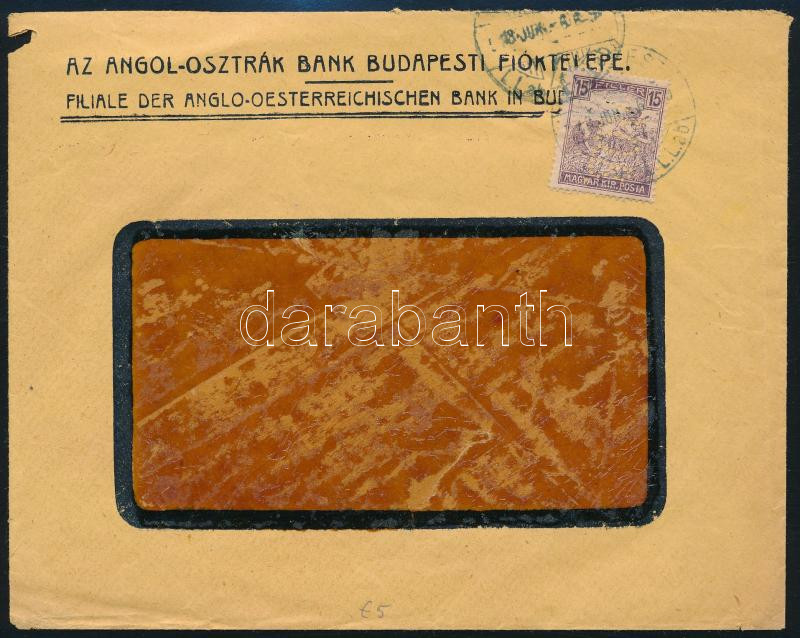 1918 Arató 15f perfin bélyeg céges levélen / perfin stamp on business cover, "BUDAPEST" (Image)(Image 1)