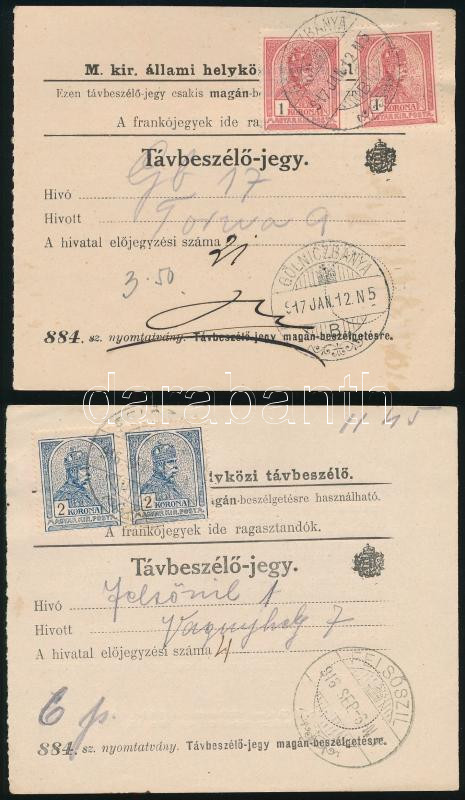 1916-1917 2 db távbeszélő jegy / Telephone tickets (Image)(Image