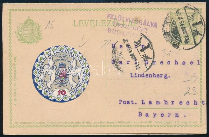 1916 Cenzúrázott válaszos levelezőlap hadsegélyező hivatali adománybélyegekkel, a géppel írt tartalom Montenegro elfoglalásáról szól! (a válaszlap használatlan) "SZÉKESFEHÉRVÁR" - Lambrecht / Censured postcard with response; the content